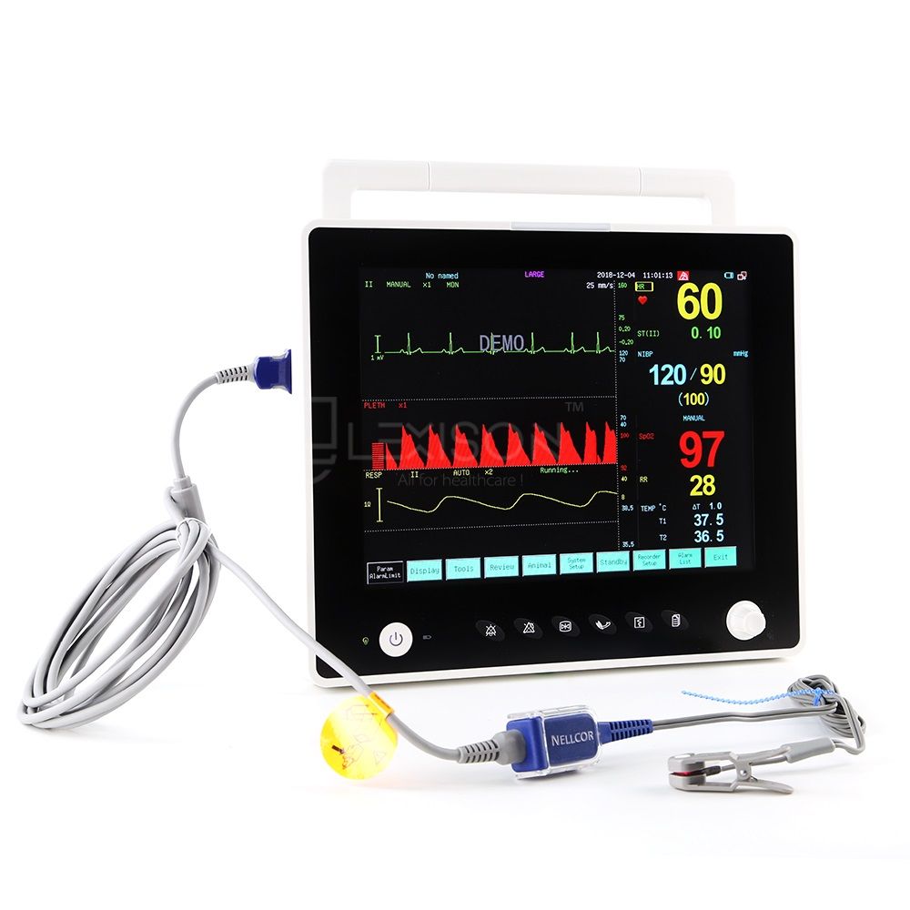 11、可显示动态呼吸氧合图、同屏7导心电和大字符模式;可存储5种自定义画面模式。